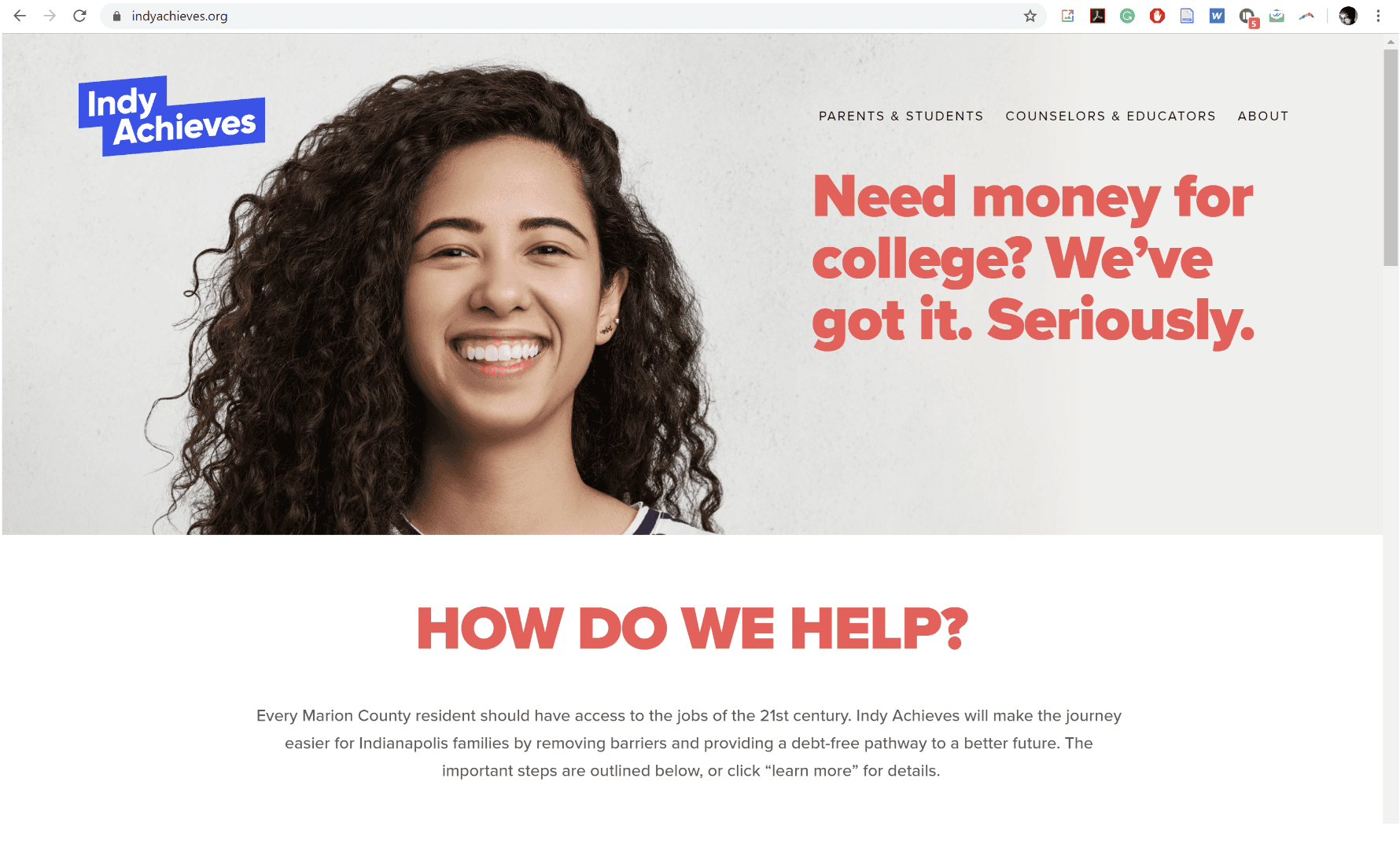 The mission of Indy Achieves is to ensure Indianapolis has the requisite talent supply to support the available local careers by piloting, evaluating, and scaling proven practices that improve post secondary access for Marion County youth and adults, improve post secondary completion for all students enrolled at IUPUI and Ivy Tech Community College Indianapolis, and improve alignment and placement in careers with purpose and value.