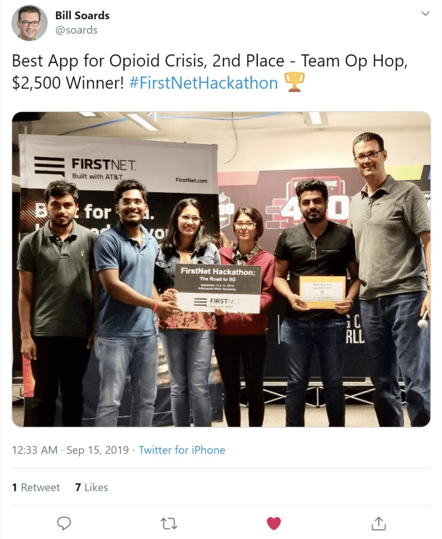 2 hackathons with AT&T through 2019 & 2020 for which my team won second prize.