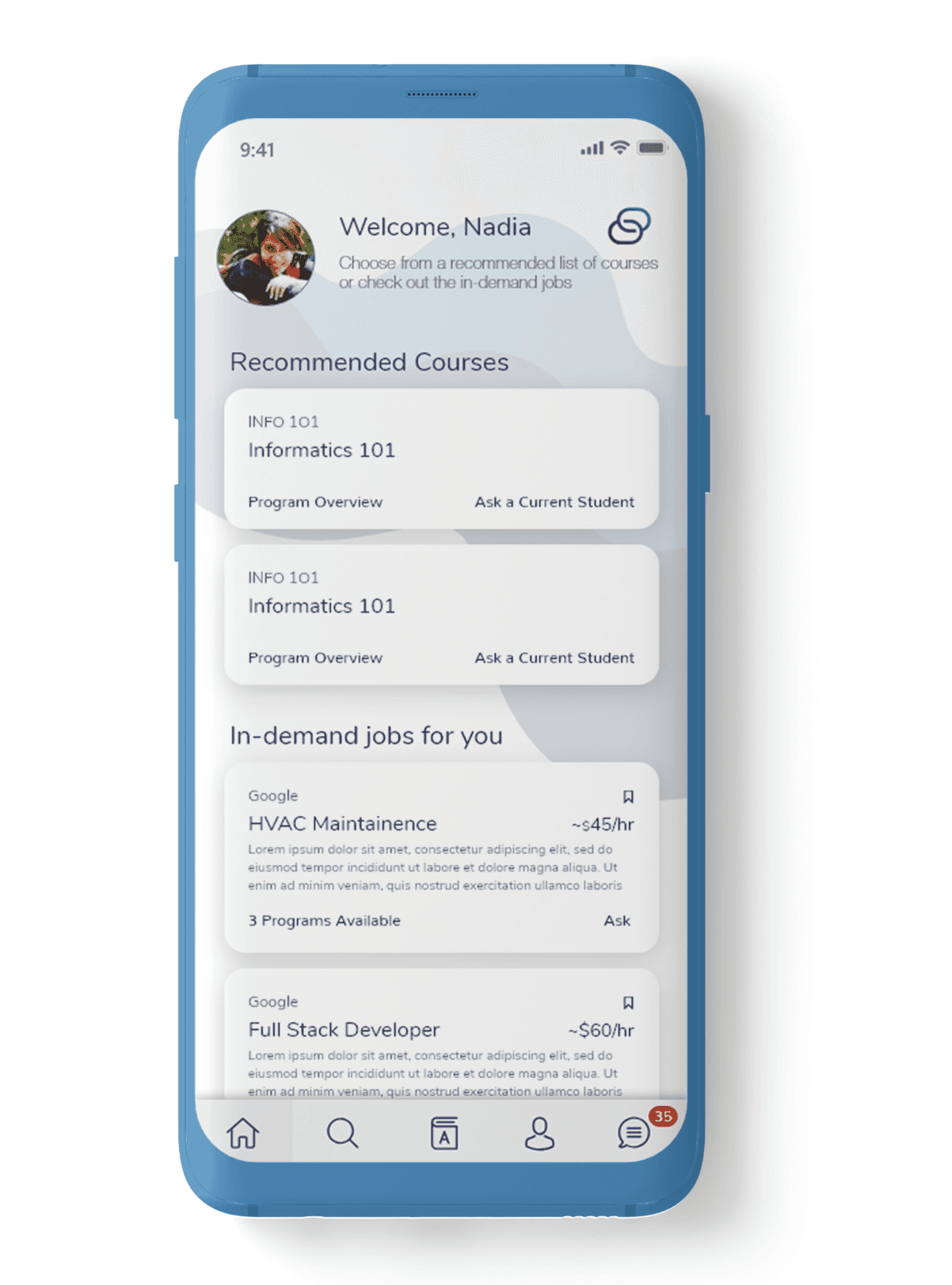 Through the Hackathon conducted by AT&T and Indy Chambers, we assisted Indyachieves and Ivy Tech Community College to develop a mobile application to know the prospective of a class before taking it, to filter course based on the job they're seeking and to schedule the classes efficiently.
